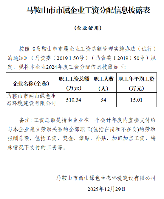 马鞍山市市属企业工资分配信息披露表
